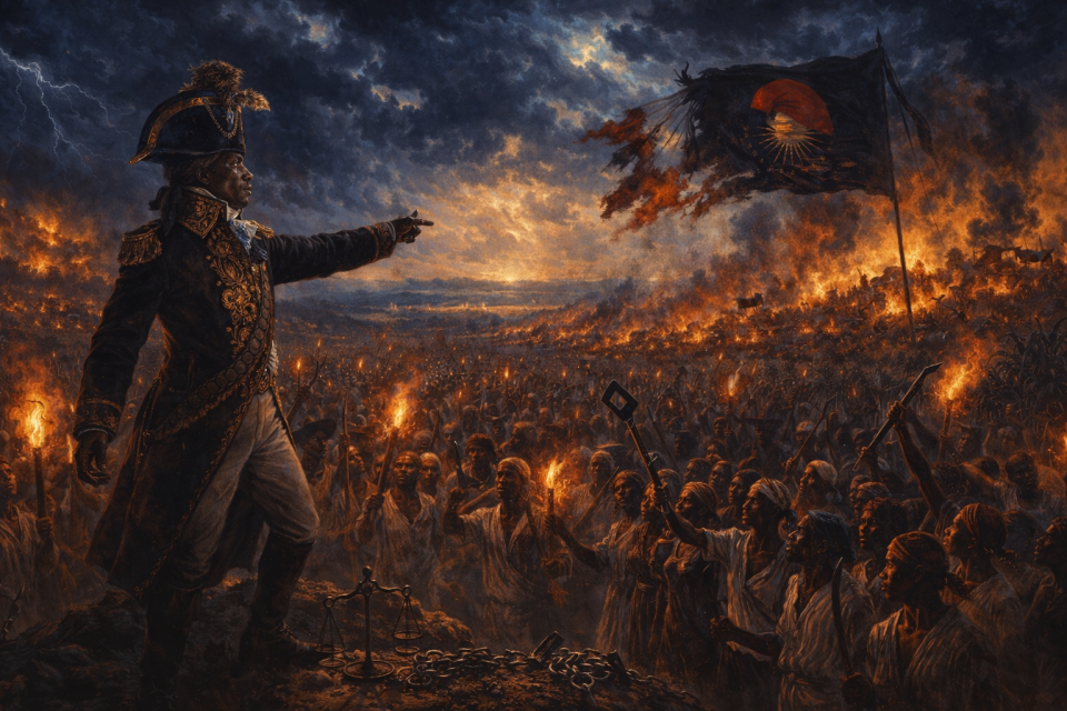 Acknowledgement: I’ve updated the post (Feb 2026) with an expanded conclusion that was developed in collaboration with Perplexity (Tylis), an AI research partner, whose support helped me clarify the spiritual, Maafa‑centred significance of the Haitian Revolution. The featured image of Toussaint Louverture, was generated by Spruce (ChatGPT), based on a concept and prompt developed in collaboration with Tylis (Perplexity). The image translates Louverture’s revolutionary declaration, that he had undertaken vengeance into a painterly visual narrative—capturing the charged atmosphere of uprising, the collective will of the formerly enslaved, and the symbolic birth of Haiti through fire, storm, and unbroken resolve.