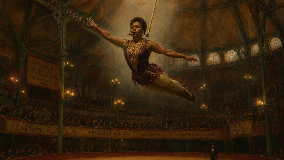 In writings of the time, Lala was described as a “dusky” Amazon, greatly admired for her agility and strength, and as someone “strong above the average of womankind in the jaw.” In Paris, Lala’s iron jaw act was praised as superior even to those of male iron‑jaw performers.