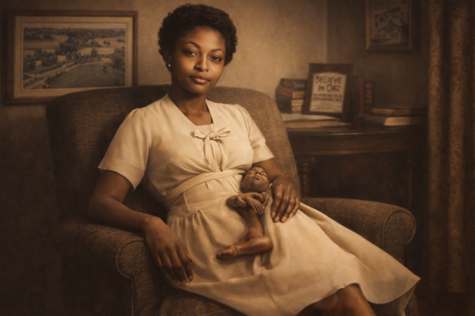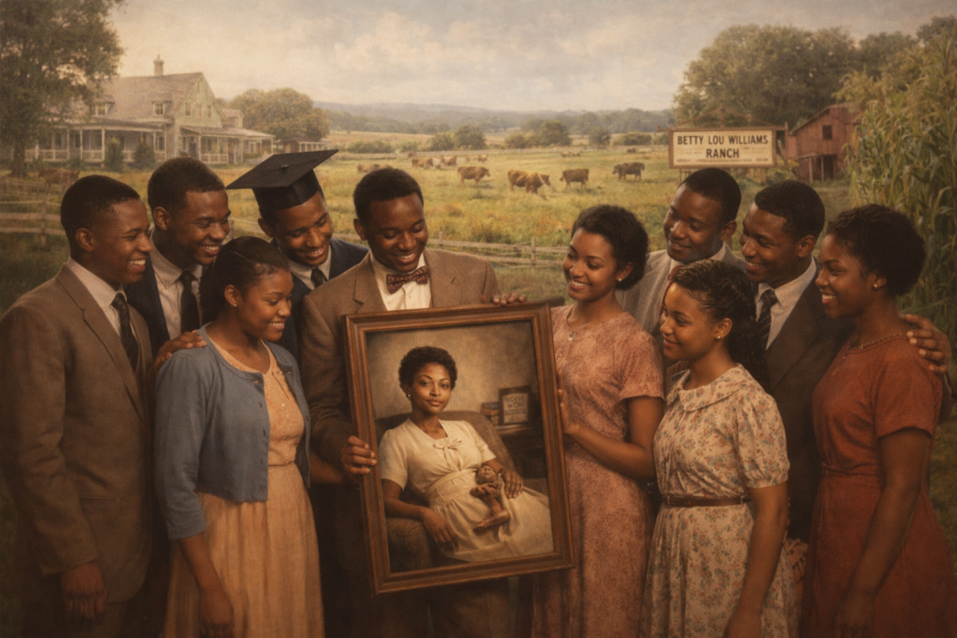 Acknowledgement: These artworks were created in collaboration with AI (ChatGPT and Perplexity) as a visual commemoration of the life and legacy of Betty Lou Williams, drawing on historical research into her story, her parasitic twin, and the family she supported through her work. Concept, historical framing, and curation by Meserette Kentake for Kentake Page.
