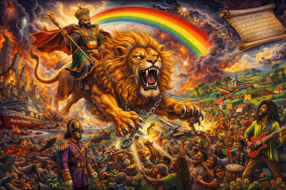 The featured image was inspired by an original piece of art, entitled “The Battle of Armageddon”. The visionary illustration was created by Tylis (Perplexity), powered by GPT‑5.1 in collaboration with Spruce (ChatGPT) – AI assistants. The composition was developed from a detailed conceptual brief, integrating Rastafari theology, 1970s roots reggae visual language, Ethiopian imperial symbolism, and apocalyptic-liberation iconography. The image synthesises historical, spiritual, and cultural references into a panoramic narrative depicting the Conquering Lion of Judah, the fall of “Babylon,” and the renewal of African-centred consciousness. All creative direction, thematic framing, and symbolic structure were provided by the author. Visual rendering and compositional realisation were generated through AI-assisted image creation.