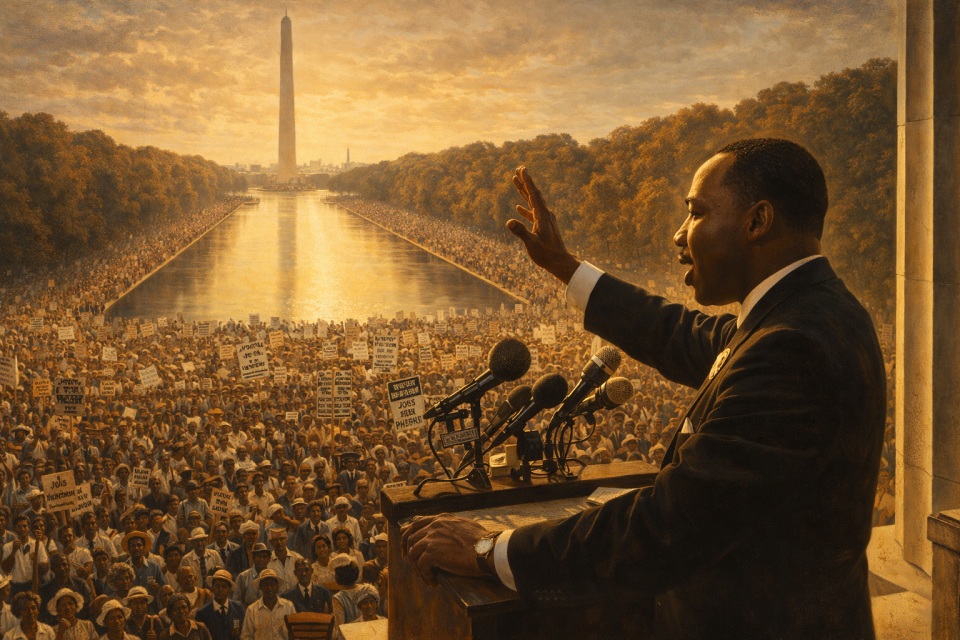 The day’s high point came when King took the podium toward the end of the event, and moved the Lincoln Memorial audience and live television viewers with what has come to be known as his ‘‘I Have a Dream’’ speech. King commented that ‘‘as television beamed the image of this extraordinary gathering across the border oceans, everyone who believed in man’s capacity to better himself had a moment of inspiration and confidence in the future of the human race,’’ and characterized the march as an ‘‘appropriate climax’’ to the summer’s events.